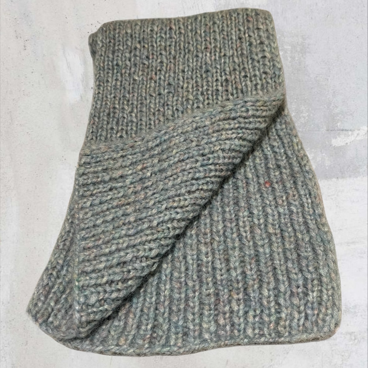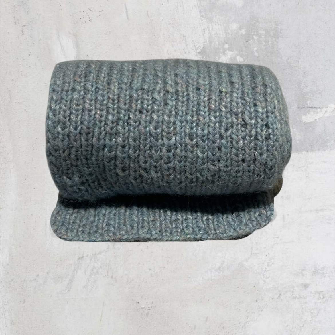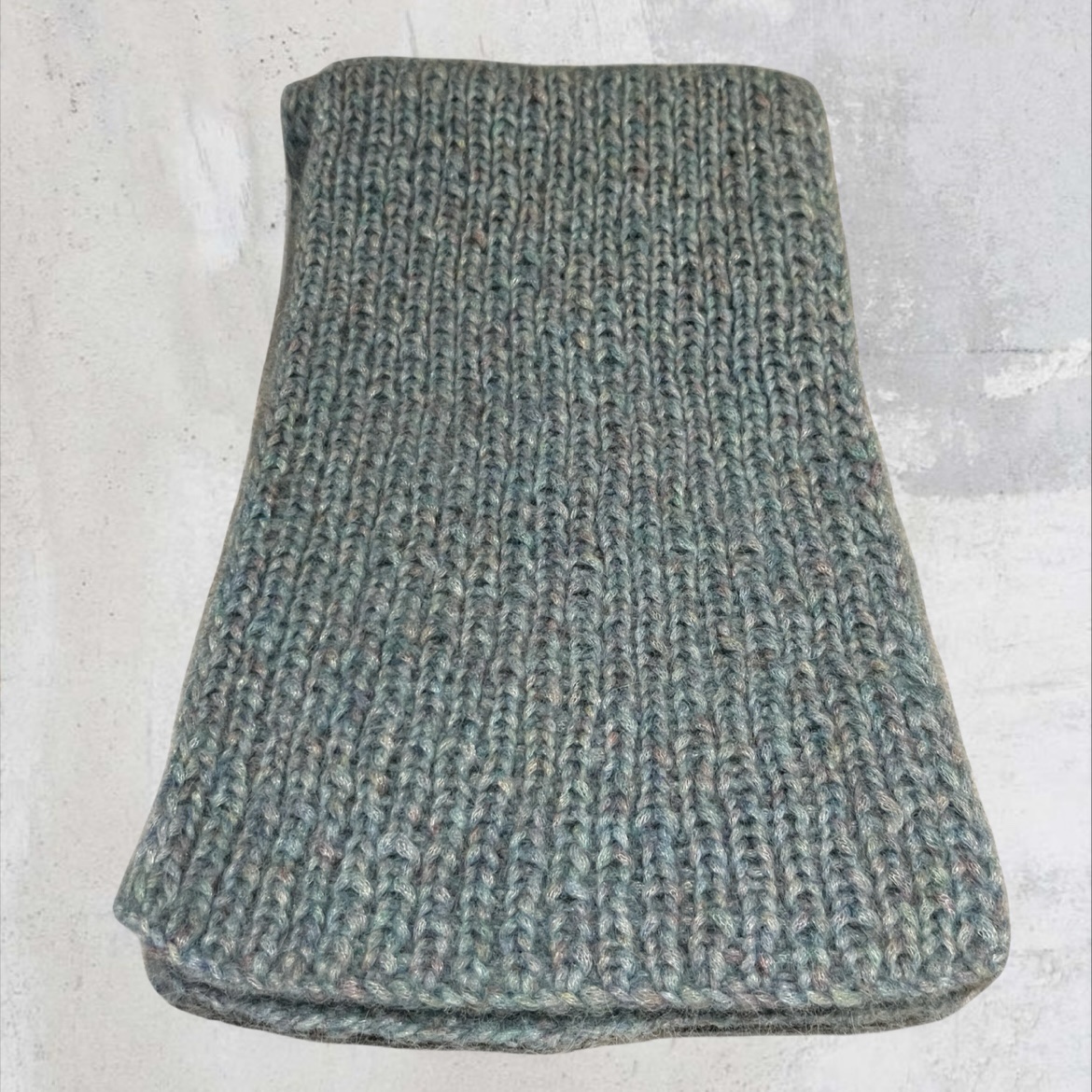 Each scarf is individually made, so no two are exactly the same. These small variations are part of what make it special, reflecting the time and attention that go into every piece. The ribbed knit gives the scarf a beautiful drape, allowing it to sit naturally over the shoulders or wrap comfortably around the neck for extra warmth.
