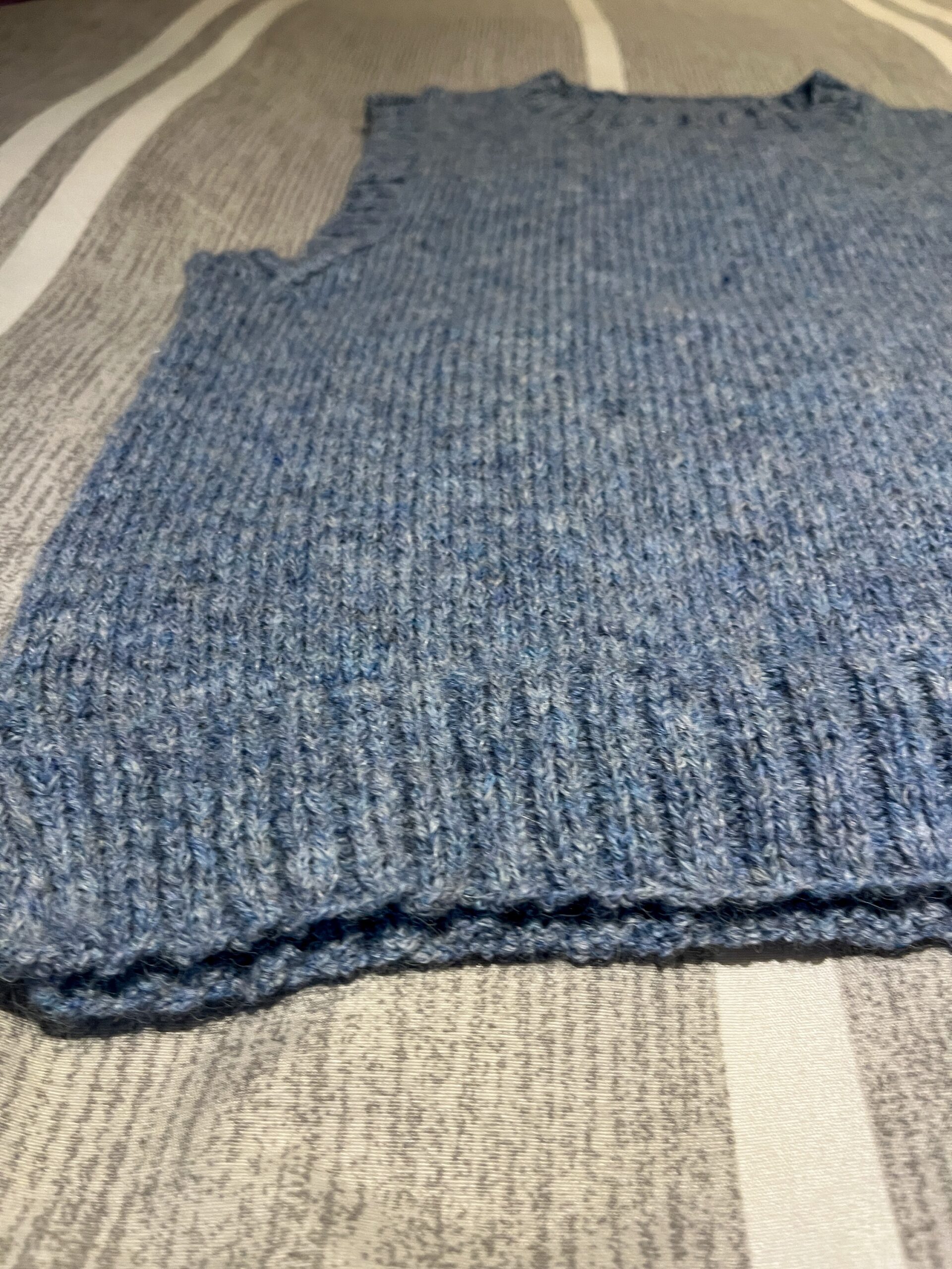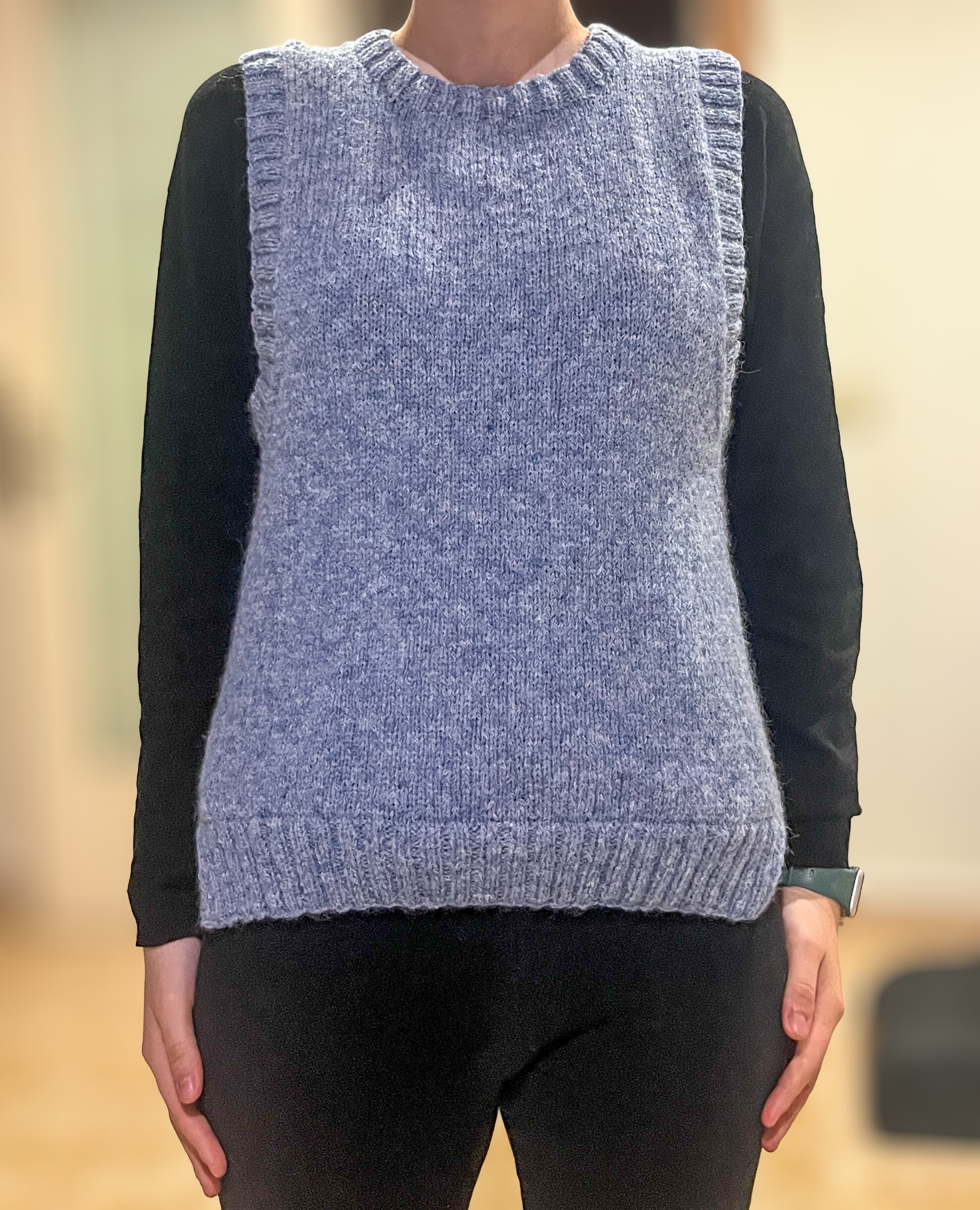 Each vest is carefully handknit, one piece at a time. This slow, intentional process ensures close attention to detail and quality that mass-produced garments simply cannot replicate. Small variations in stitching are a natural result of handmade work and are part of what make each vest unique.