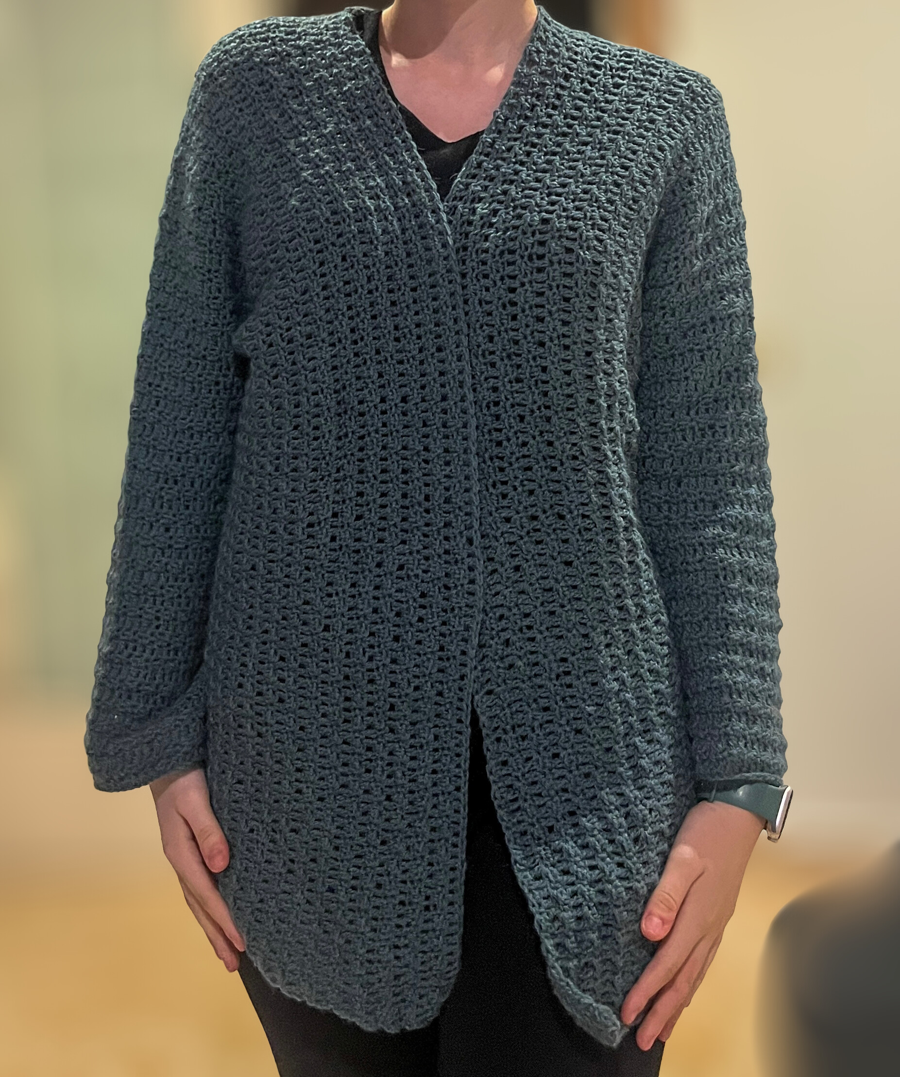 Wool is valued for its ability to adapt to the body, helping regulate temperature in both cool and fluctuating environments. It naturally manages moisture, resists odors, and retains warmth even in damp conditions, making this cardigan well suited for everyday wear and travel. Over time, the wool softens and molds gently to the wearer, enhancing comfort while preserving the integrity of the crochet work. The long sleeves and balanced proportions allow for freedom of movement, ensuring the cardigan feels as practical as it is timeless.